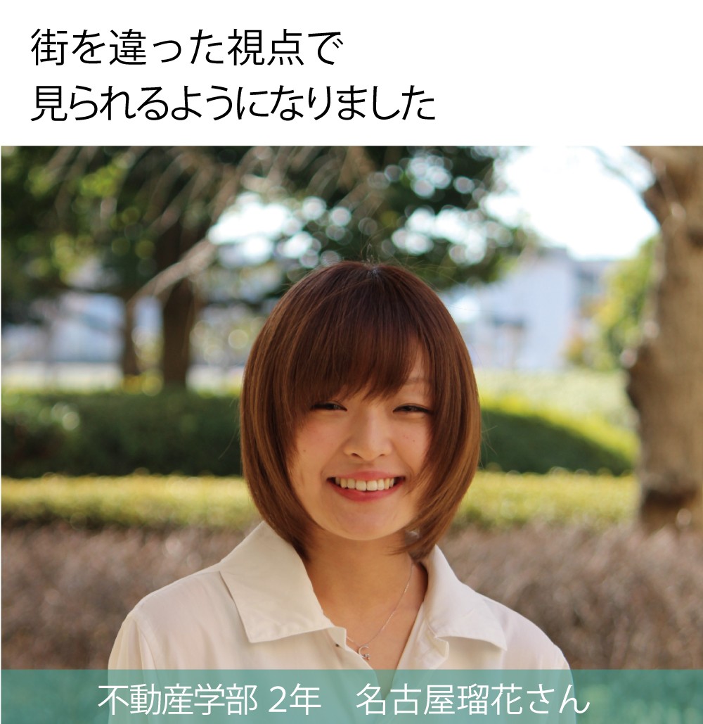 今受けている「ミクロ経済学」の授業は、不動産だけでなく普段私たちが消費しているものの価値の決まり方など、身近なことを学ぶことができてとてもおもしろいです。不動産も生活に密接していますし、生活に役立つ知識が積み重なっているなと実感しています。